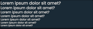 | [Question]?<br><size=90%>[Question]?<br><size=90%>[Question]?<br><size=90%>[Question]?<br><size=90%>[Question]?<br><size=90%>[Question]?<br><size=90%>[Question]? | Repeats the question 7 times. Each time it gets repeated, it will me smaller by 10% |