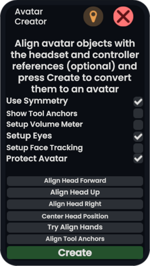 | Center Head Position | Will try to align the head reference target's position with the avatar's head position |