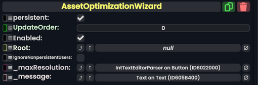 Asset Optimization Wizard component as seen in the Scene Inspector