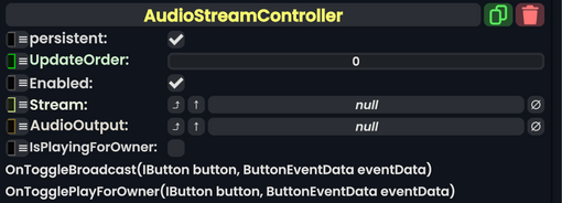 Audio Stream Controller component as seen in the Scene Inspector