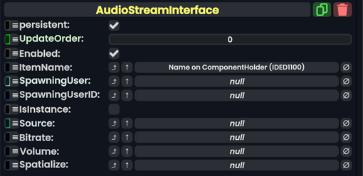 The AudioStreamInterface component is used on AudioStream objects that are spawned in by the user via the dash to allow the engine to interface with the stored audio stream.