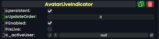 AvatarLiveIndicator component as seen in the Scene Inspector