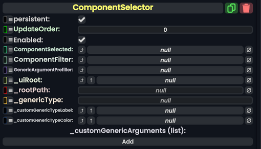 Component Selector component as seen in the Scene Inspector