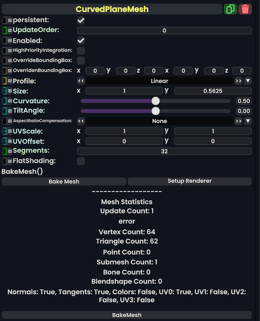 Curved Plane Mesh component as seen in the Scene Inspector