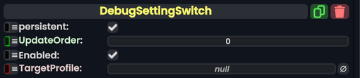 The DebugSettingSwitch component is used to Switch profiles as a way of debugging. Same thing switching between VR and desktop does. Only works in user space.