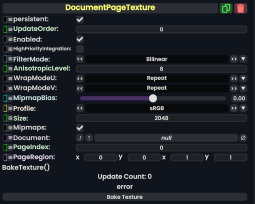 Document Page Texture component as seen in the Scene Inspector