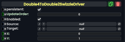 Double 4To Double 2Swizzle Driver component as seen in the Scene Inspector