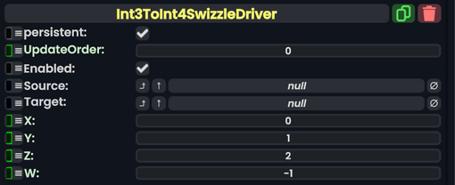 Int 3To Int 4Swizzle Driver component as seen in the Scene Inspector