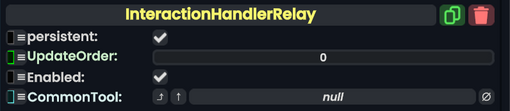 The InteractionHandlerRelay component is used internally by the game engine to find the source handler of a tool or slot.