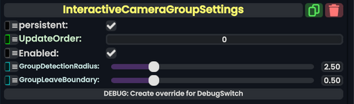 Interactive Camera Group Settings component as seen in the Scene Inspector