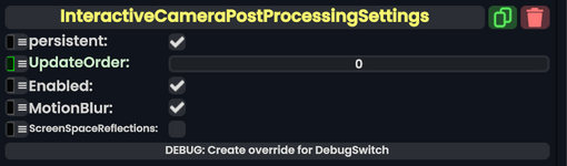 Interactive Camera Post Processing Settings component as seen in the Scene Inspector