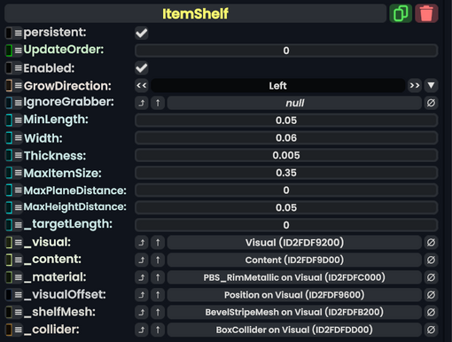 Item Shelf component as seen in the Scene Inspector