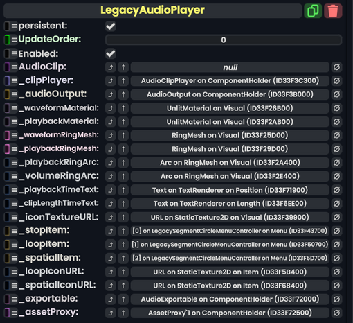 AssetProxy`1<AudioClip> | The asset proxy used to handle dropping this audio player into fields that accept audio clips. |