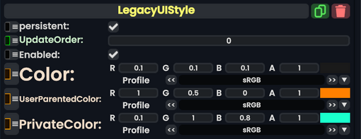 The LegacyUIStyle component is used in older content to specify what colors a UI should be depending on where it is. This should not be used in new content, and should be removed/replaced whenever possible.