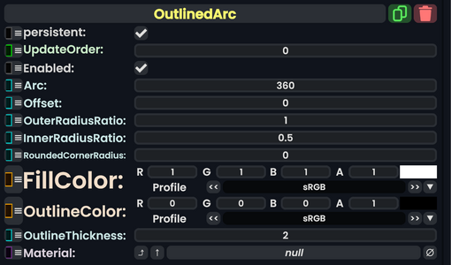 OutlinedArc component as seen in the Scene Inspector