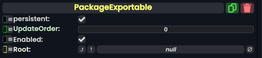 The PackageExportable component takes in any Slot hierarchy as a field, and when the slot that has this exportable component on it gets exported, it will actually save a file on your device of the target slot hierarchy provided (and not the item that your exporting from unless it is also under that hierarchy).