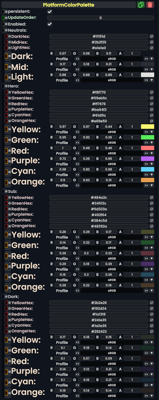 Platform Color Palette component as seen in the Scene Inspector
