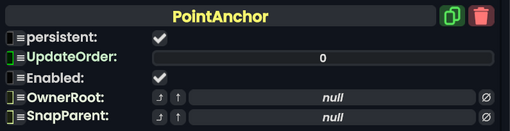 The PointAnchor component is used so that the dev tool can snap objects to it when they are being moved. Part of the dev tool's snapping functionality.