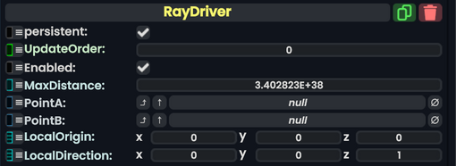 A ray driver is a component that takes a start origin and a direction and drives point A and B via a RayCast, keeping the distance between the two below MaxDistance.