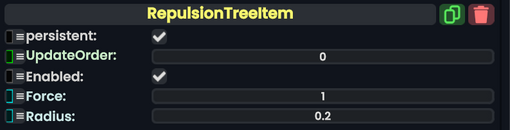 Repulsion Tree Item component as seen in the Scene Inspector