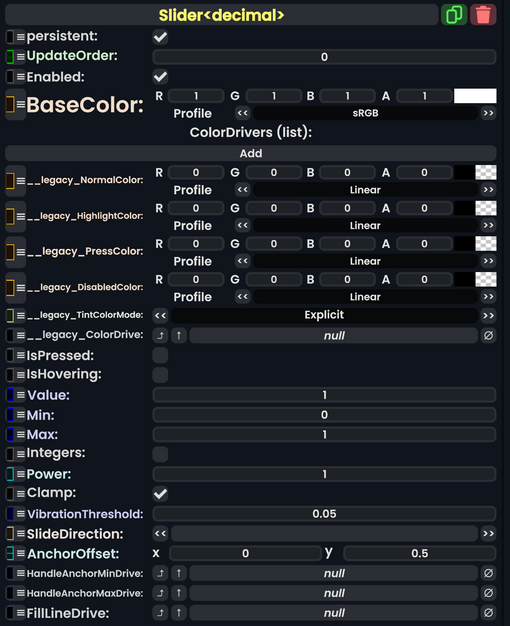 Float | Changes the way this slider determines its position. Power represents a shifted curve of values that is heavier at the ends of the slider. |