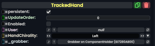 The TrackedHand component controls the grabbing and updating of a hand including camera based hand tracking of a user.