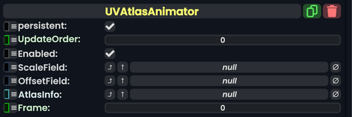 The UVAtlasAnimator component is used primarily to drive texture animations on materials like GIFs. It can also be used as a sprite sheet to animate things like 2D mouths.
