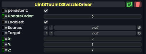 Uint 3To Uint 3Swizzle Driver component as seen in the Scene Inspector