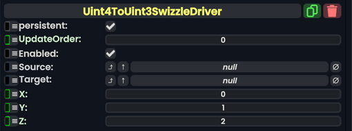 Uint 4To Uint 3Swizzle Driver component as seen in the Scene Inspector