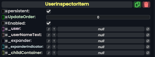 The UserInspectorItem component is used to display user items of the User Inspector.