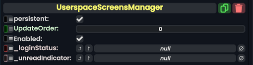 Userspace Screens Manager component as seen in the Scene Inspector