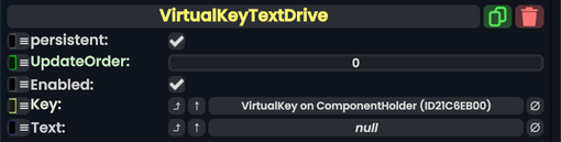 Virtual Key Text Drive component as seen in the Scene Inspector
