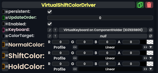 Virtual Shift Color Driver component as seen in the Scene Inspector
