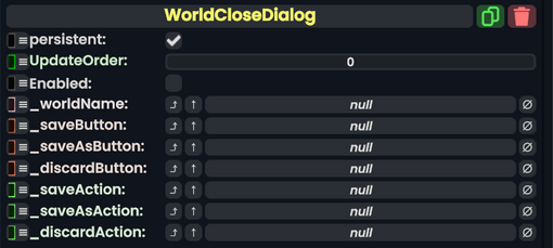 WorldCloseAction | The component to trigger with the request to discard changes for the world being closed. |