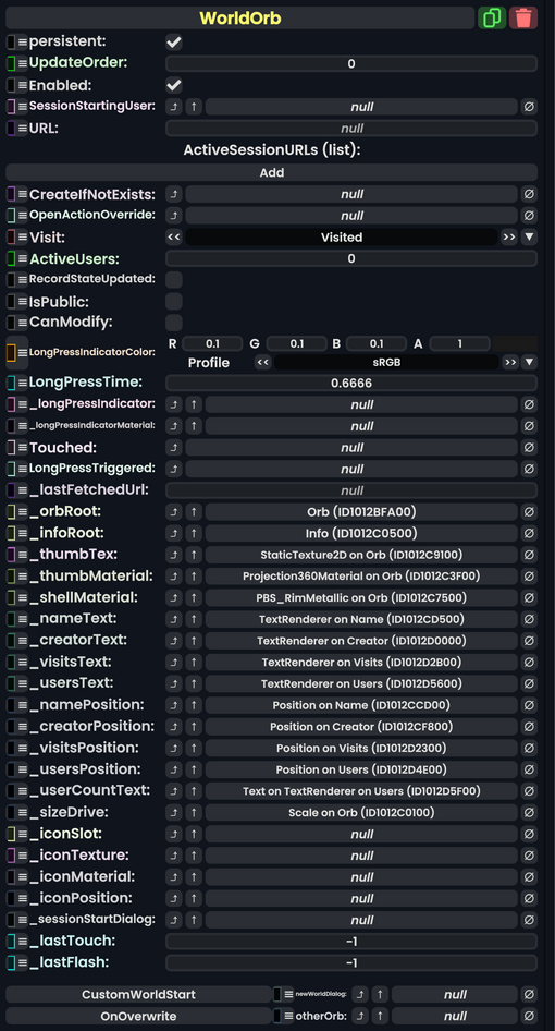 ColorX | The color to use when the world orb is long pressed. |