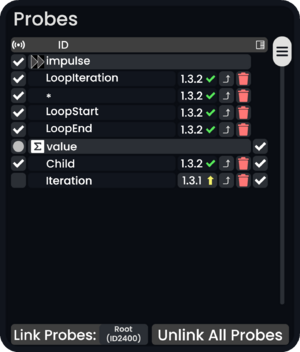 - a button (trashcan) to unlink the probe (This will NOT delete the probe itself.)