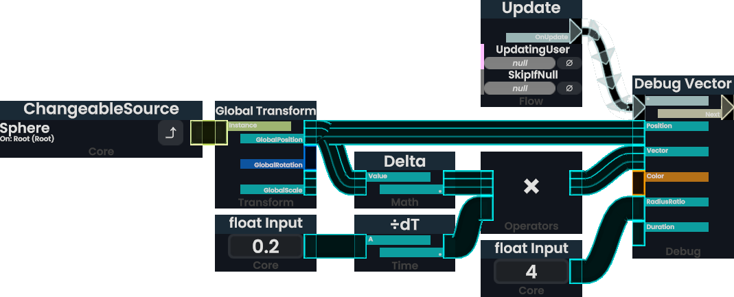 DivDeltaTime is a ProtoFlux node which Divides a value by the amount of time passed since the last local update.