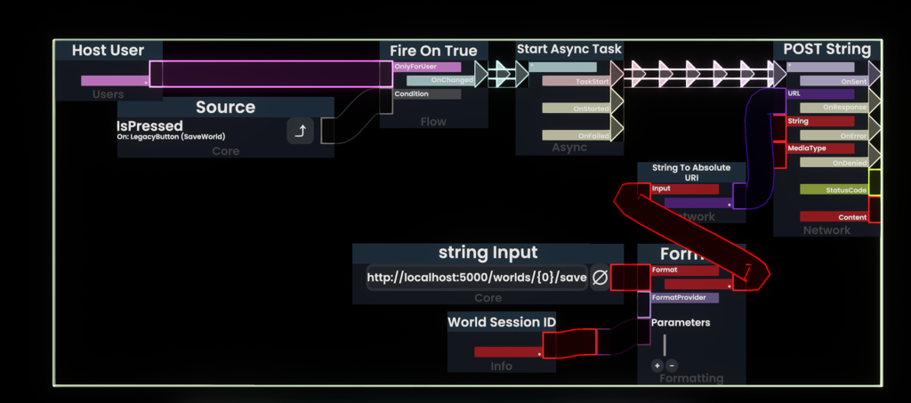 | 17:56, 4 February 2024 | World session id example1.png (file) | 234 KB | An example code with a kind of bad way to check a button press that uses post string protoflux node to tell a headless to save with crystalize headless modification. | 1 | |