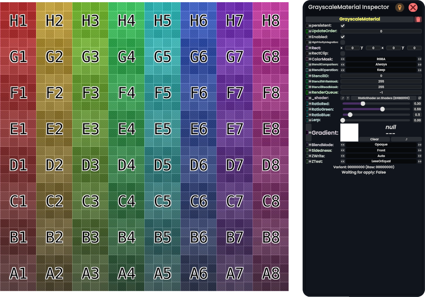 | 01:50, 13 January 2024 | GrayscaleMaterial rainbow.webp (file) | 750 KB | GrayscaleMaterial example 2. | 1 | |
