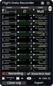 21:27, 31 March 2024 Flight Data Recorder Example Restore.png (file) 179 KB This example shows how value probes of the Flight Data Recorder can be integrated to restore the state of a logged system. 1