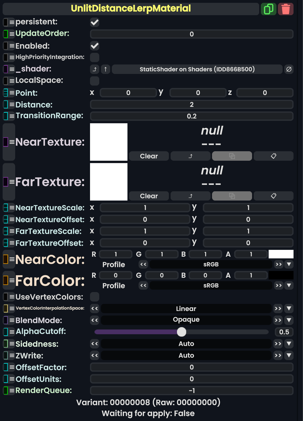 | 02:53, 12 February 2024 | UnlitDistanceLerpMaterialComponent.png (file) | 319 KB | AmasterAmaster (talk | contribs) | Image that shows the "UnlitDistanceLerpMaterial" component. | 1 | |
