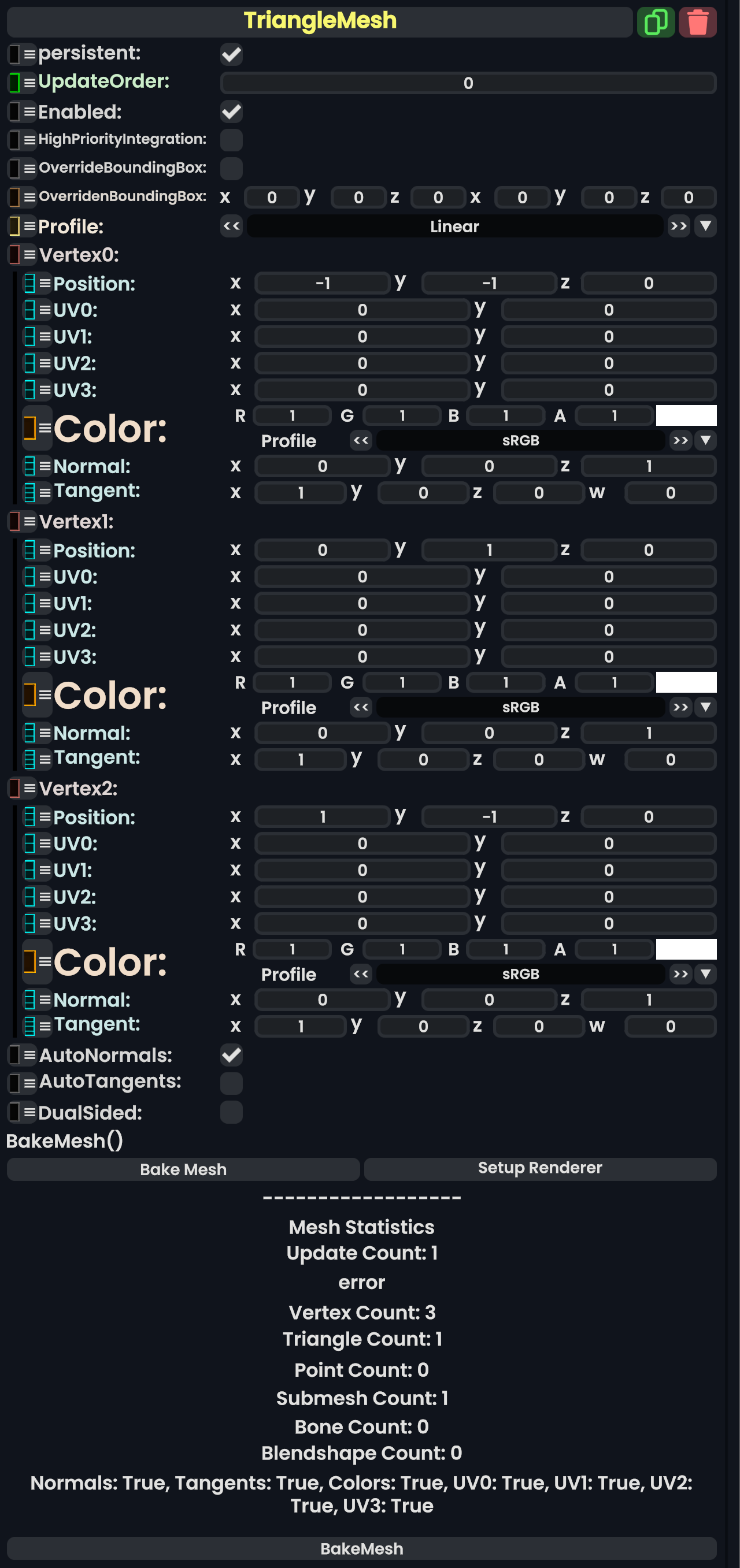 | 02:34, 12 February 2024 | TriangleMeshComponent.png (file) | 436 KB | AmasterAmaster (talk | contribs) | Image that shows the "TriangleMesh" component. | 1 | |