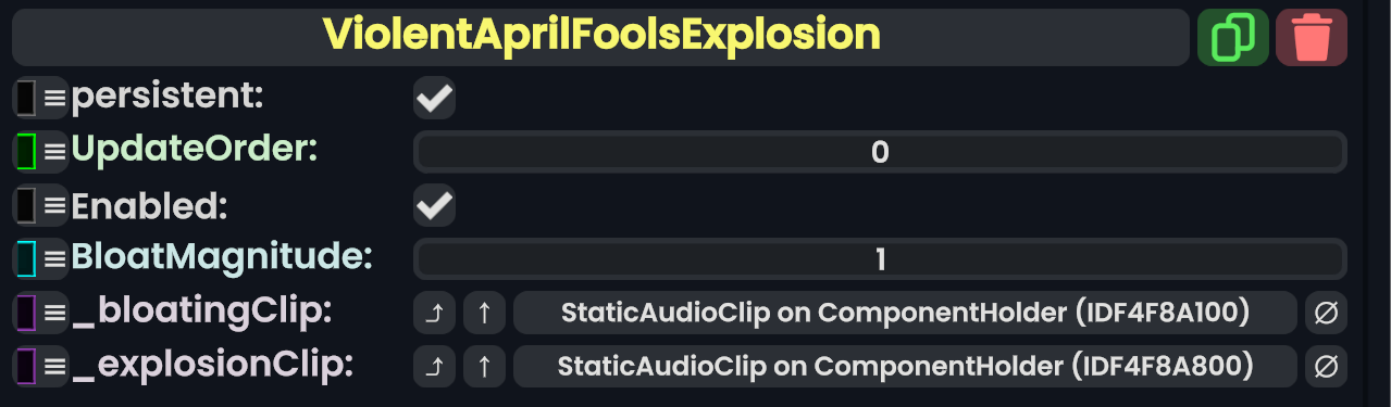 | 04:08, 12 February 2024 | ViolentAprilFoolsExplosionComponent.png (file) | 87 KB | AmasterAmaster (talk | contribs) | Image that shows the "ViolentAprilFoolsExplosion" component. | 1 | |