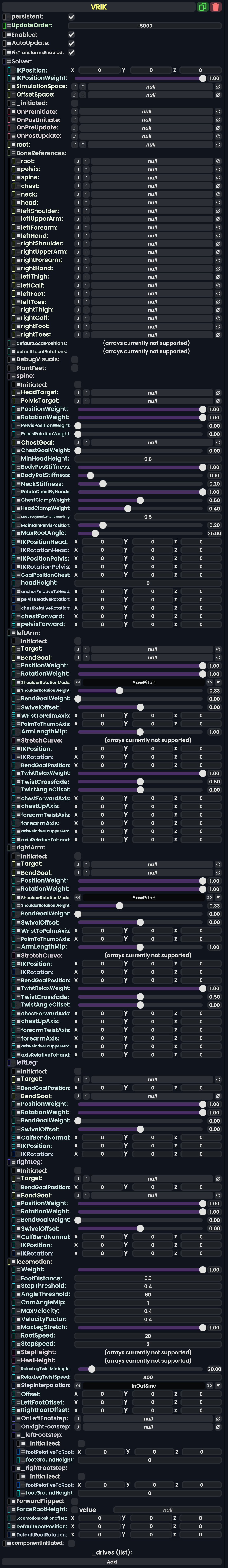 | 03:37, 12 February 2024 | VRIK.png (file) | 1.63 MB | AmasterAmaster (talk | contribs) | Image that shows the "VRIK" component. | 1 | |