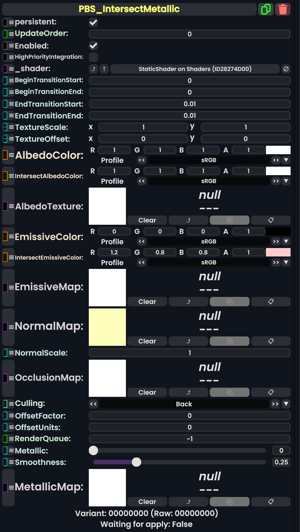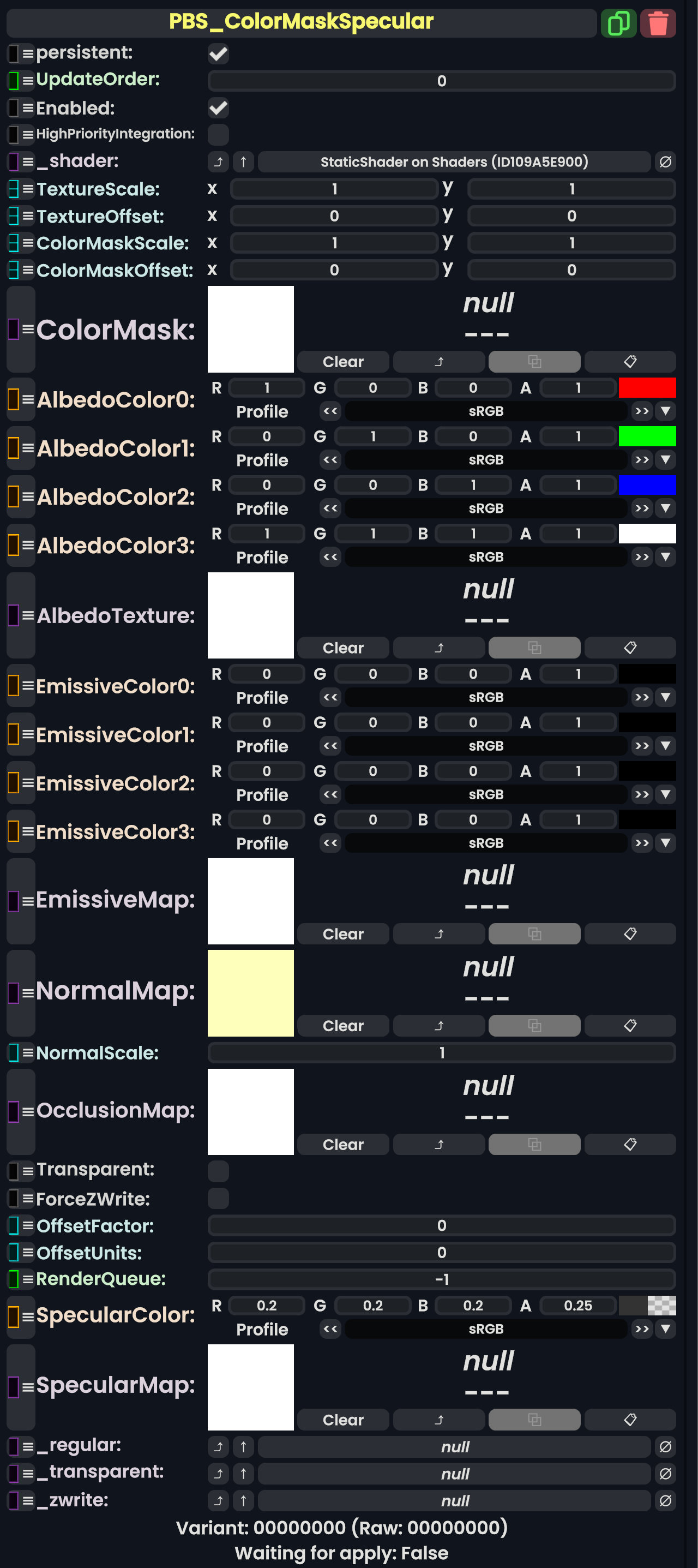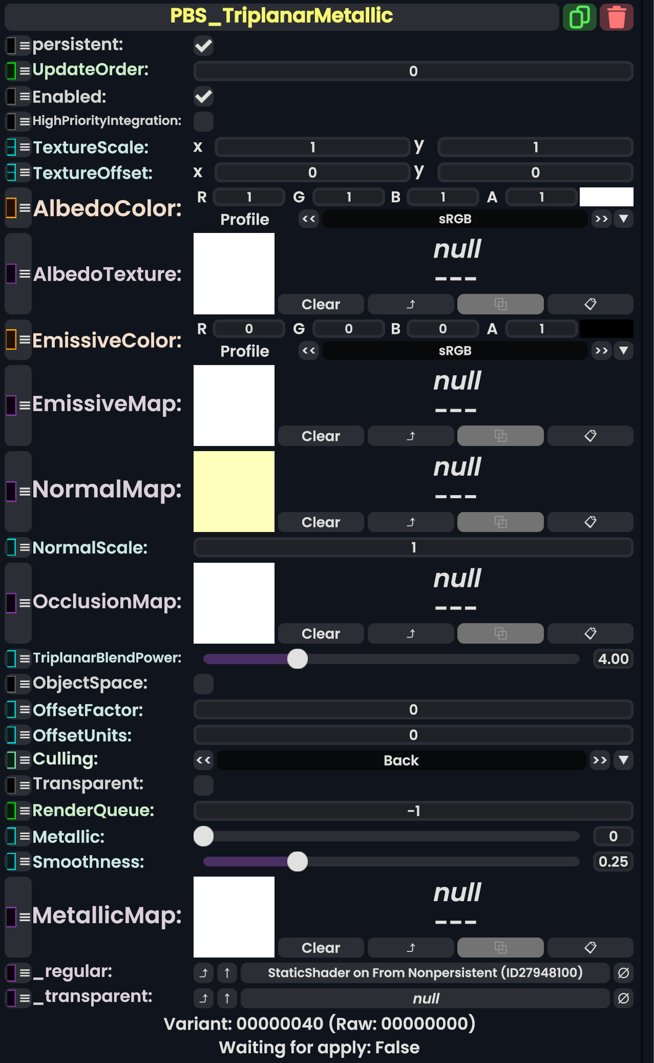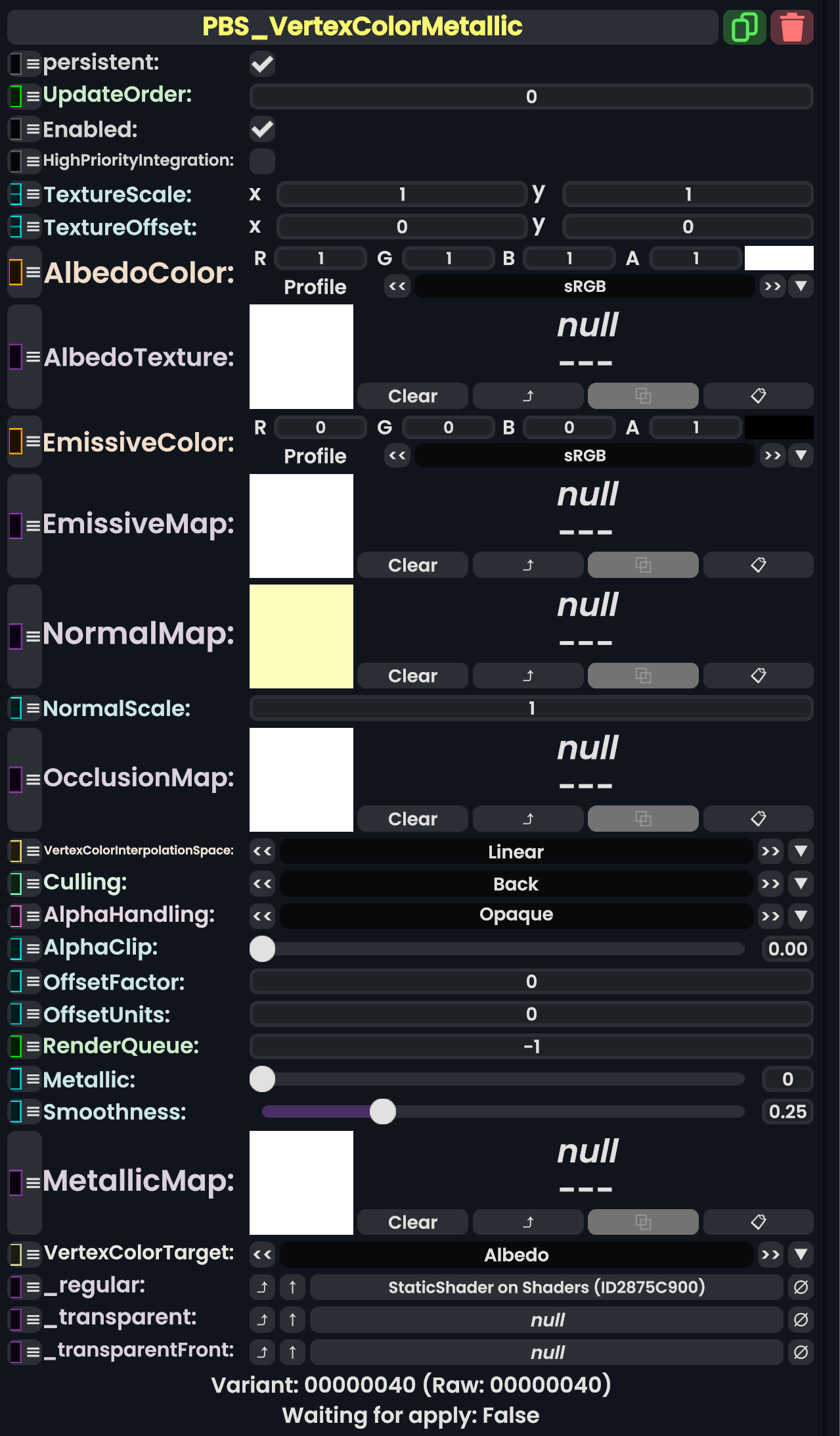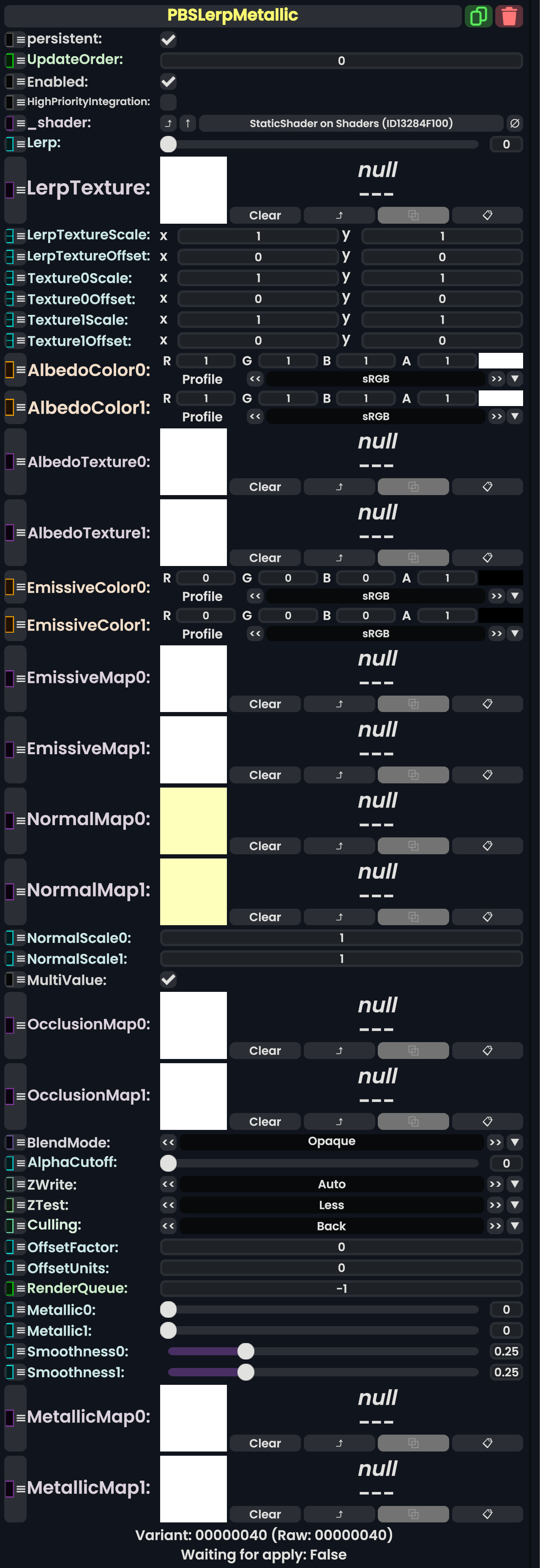 | 05:31, 12 February 2024 | PBS ColorSplatMetallicComponent.png (file) | 710 KB | AmasterAmaster (talk | contribs) | Image that shows the "PBS_ColorSplatMetallic" component. | 1 | |