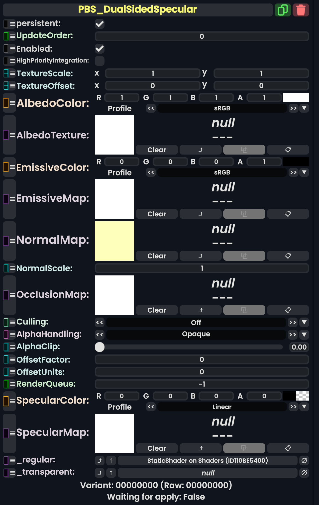 | 05:50, 12 February 2024 | PBS DualSidedSpecularComponent.png (file) | 322 KB | AmasterAmaster (talk | contribs) | Image that shows the "PBS_DualSidedSpecular" component. | 1 | |