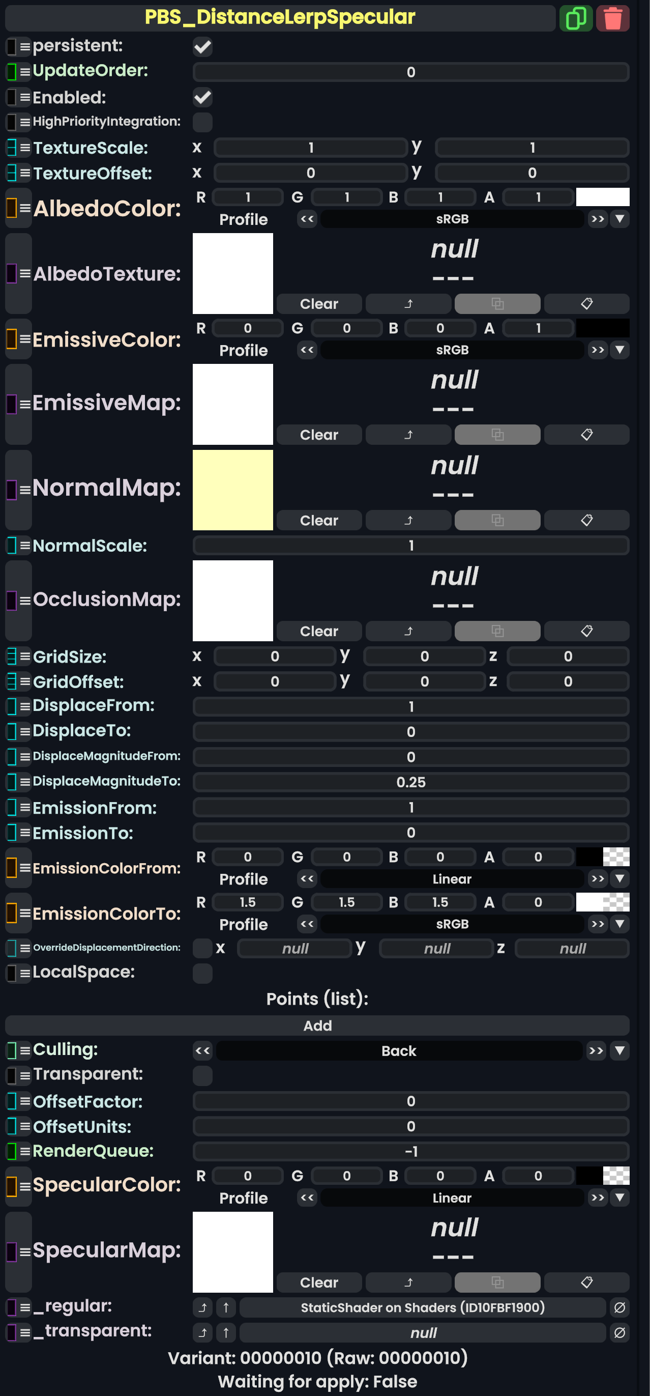 | 05:46, 12 February 2024 | PBS DistanceLerpSpecularComponent.png (file) | 452 KB | AmasterAmaster (talk | contribs) | Image that shows the "PBS_DistanceLerpSpecular" component. | 1 | |