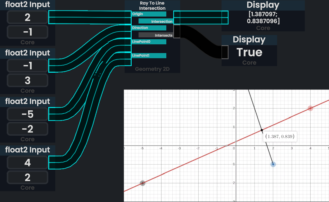 An example of [[ProtoFlux:Ray To Line Intersection | An example of [[ProtoFlux:Ray To Line Intersection]] with an accompanied graphical view. | ||