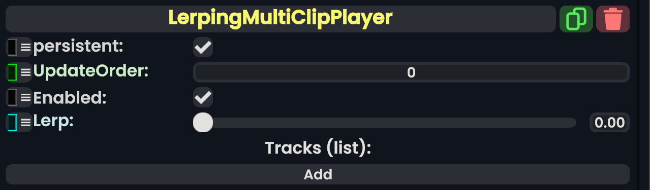 | 03:40, 11 February 2024 | LerpingMultiClipPlayerComponent.png (file) | 48 KB | AmasterAmaster (talk | contribs) | Image that shows the "LerpingMultiClipPlayer" component. | 1 | |