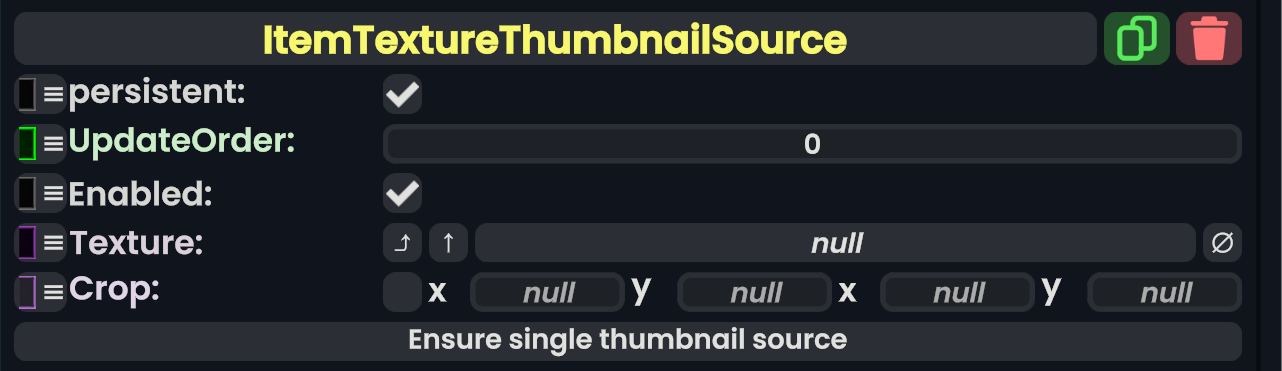 | 03:27, 11 February 2024 | ItemTextureThumbnailSourceComponent.png (file) | 66 KB | AmasterAmaster (talk | contribs) | Image that shows the "ItemTextureThumbnailSource" component. | 1 | |